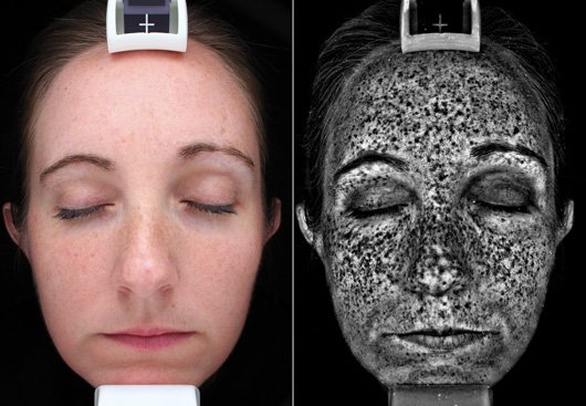 No, VISIA skin analysis is not similar to an X-Ray. It functions more like the advanced cameras employed by professional photographers and is an advanced beauty technology that provides detailed skin assessments. It does not use any harmful radiation—only safe wavelengths of light to capture scans.
