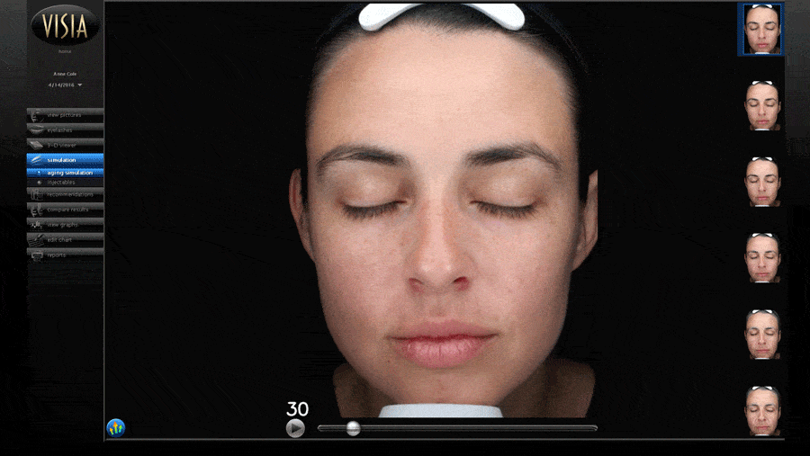 “True skin age” is determined by VISIA through a comprehensive analysis of your skin. The system compares your skin’s condition to an extensive database, considering both your skin type and age group. This comparison allows for a relative age assessment, providing insight into your skin’s health and guiding personalized treatment plans.